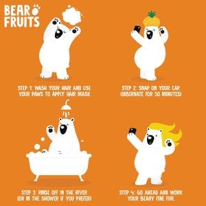 Step 1. Wash fur and shake head vigorously to get rid of dripping water (or use a towel)Step 2. Use your paws to apply hair mask from lengths to tipsStep 3. Snap on your cap (hibernate for 30 min)Step 4. Rinse off in the river (or shower)