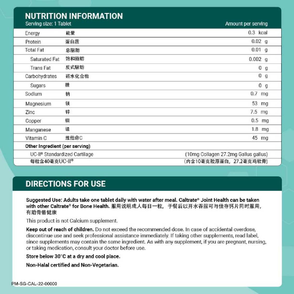 UC-II® Collagen, Vitamin C, Manganese, Manganese, Magnesium, Zinc, Copper