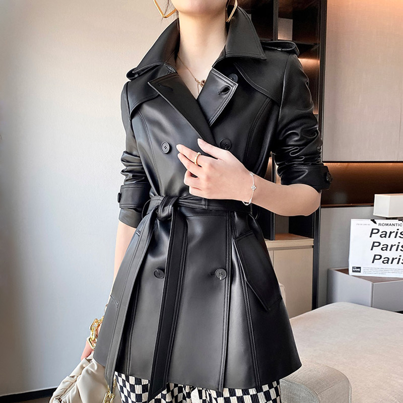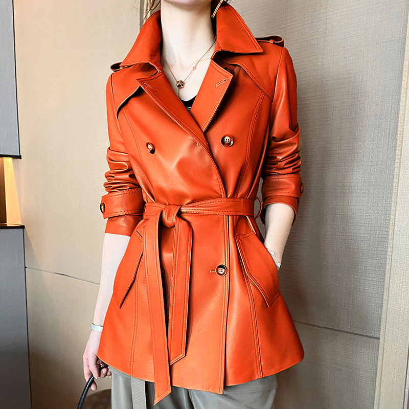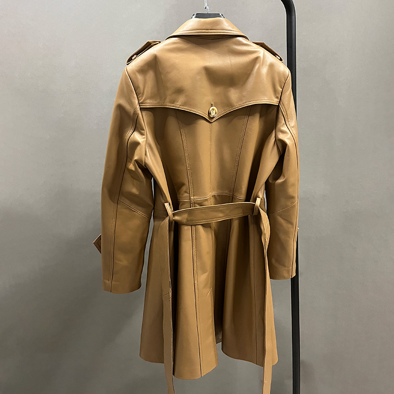 New Trench Coat Sheepskin Leather Shirt Long Bomber Jacket Genuine Leather Jacket With Belt