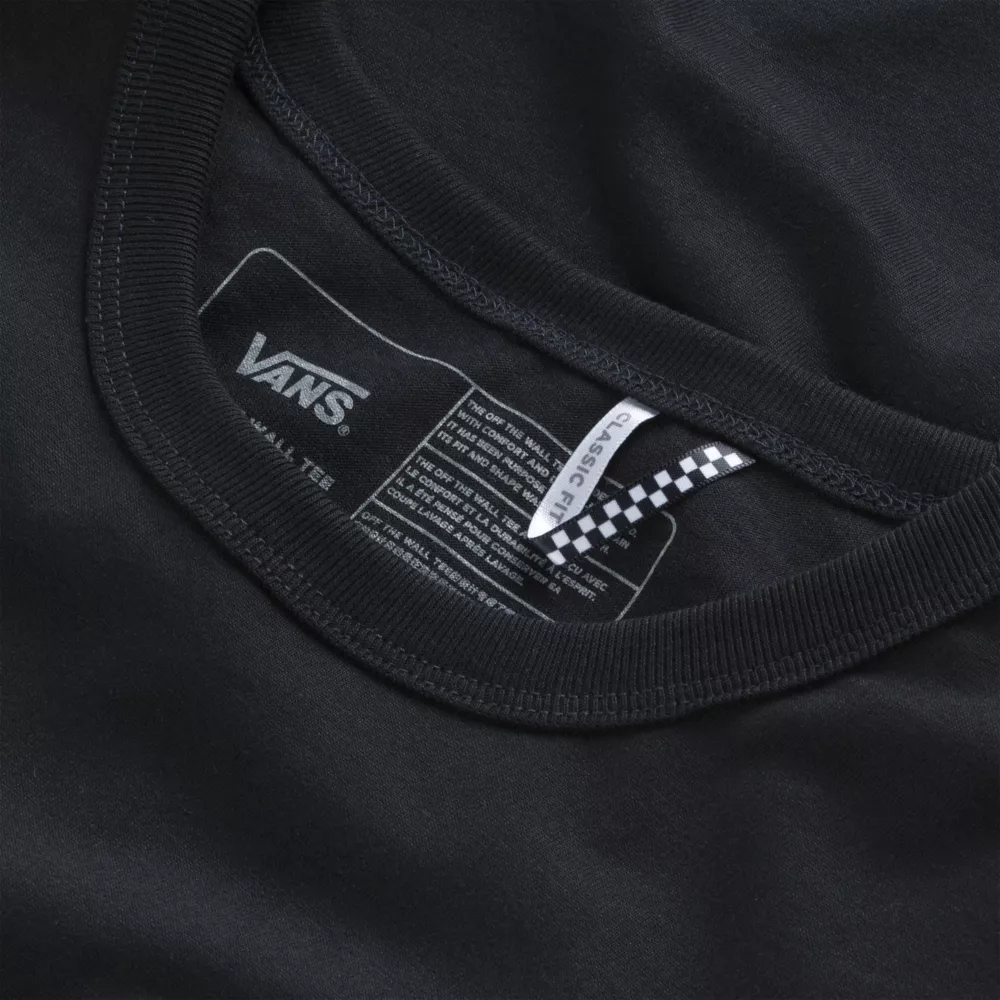 Everyone needs a T-shirt they can rely on. The Off The Wall Classic Short Sleeve T-Shirt will end your search for the perfect tee so you can focus on the more important things. Featuring an interior waffle print that pulls moisture away from the skin, this new 100% cotton tee keeps you comfortable and dry while sturdy-spun yarn provides durability and minimizes shrinking. With a bound rib collar and reinforced shoulder seams, premium Vans trims, an embroidered chest patch, and a checkerboard hanger loop, the Off The Wall tee will be the last T-shirt you will ever need. Fit type: classic. Model is 6 feet tall and wearing a size Medium.