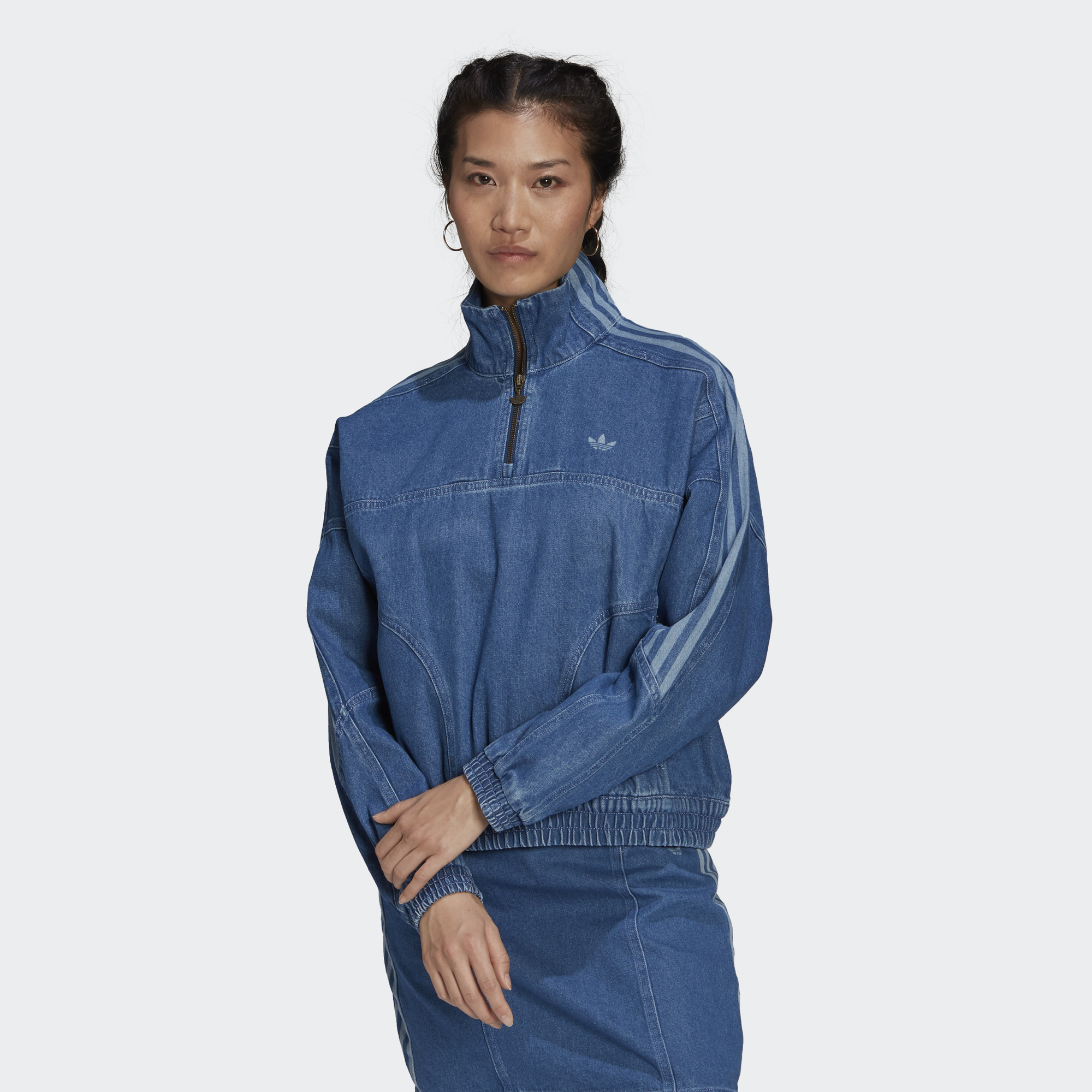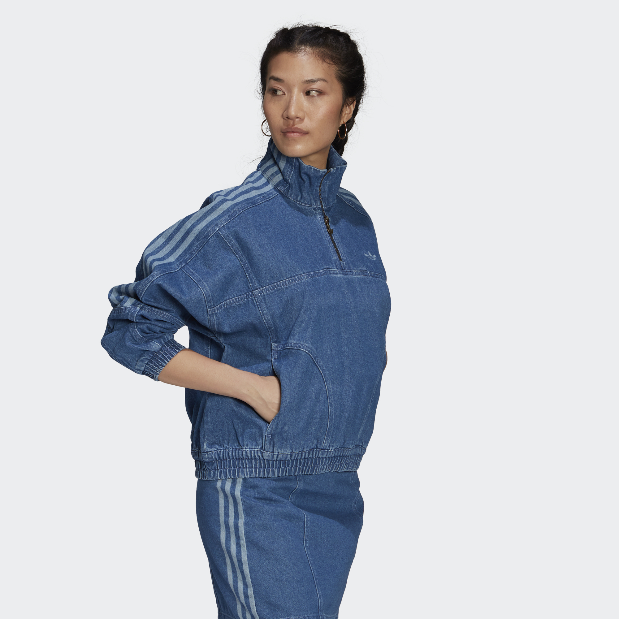 Let's play a word game. What comes to mind when we say 3-Stripes? Swagger, sport, style. What about denim? Cool, casual, vintage. There you have it. Rock casual swagger every time you pull on this adidas track top. Add a matching bottom to go full denim or open your closet doors and play. By buying cotton products from us, you're supporting more sustainable cotton farming.