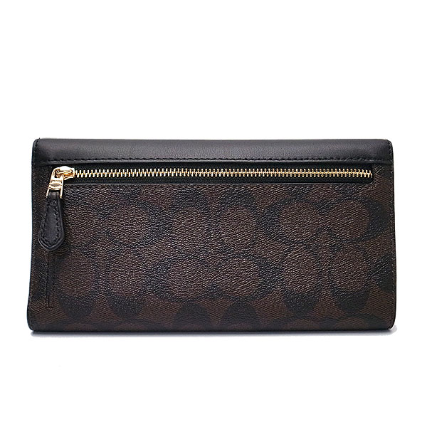 Coach Wallet In Gift Box Long Wallet Slim Trifold Wallet In Signature Canvas Brown Black # C5966