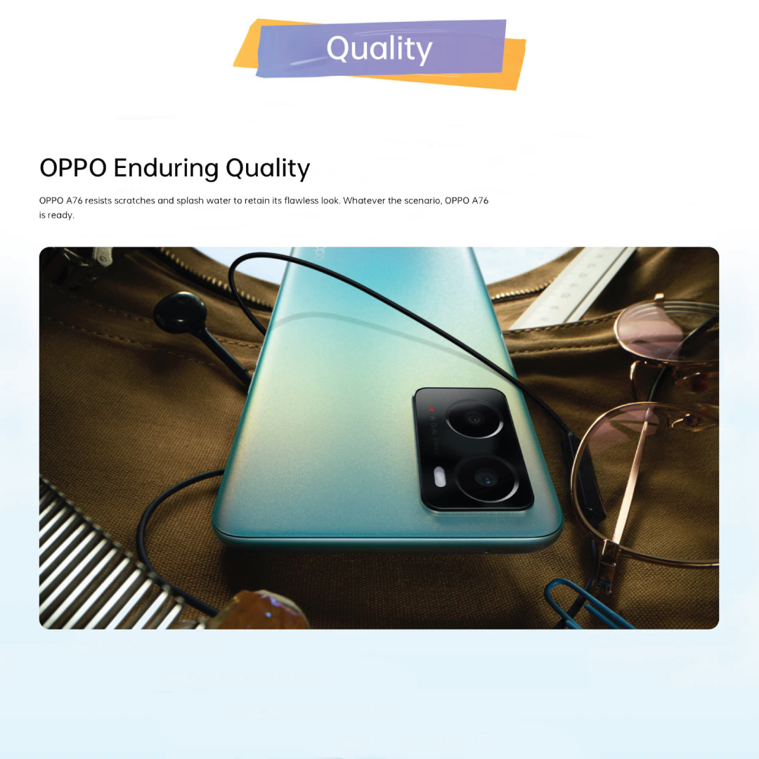OPPO A76 / Portrait Bokeh Camera/ 90Hz Colour-Rich Punch-Hole Display/5000mAh Battery/ 6GB RAM + 128 ROM