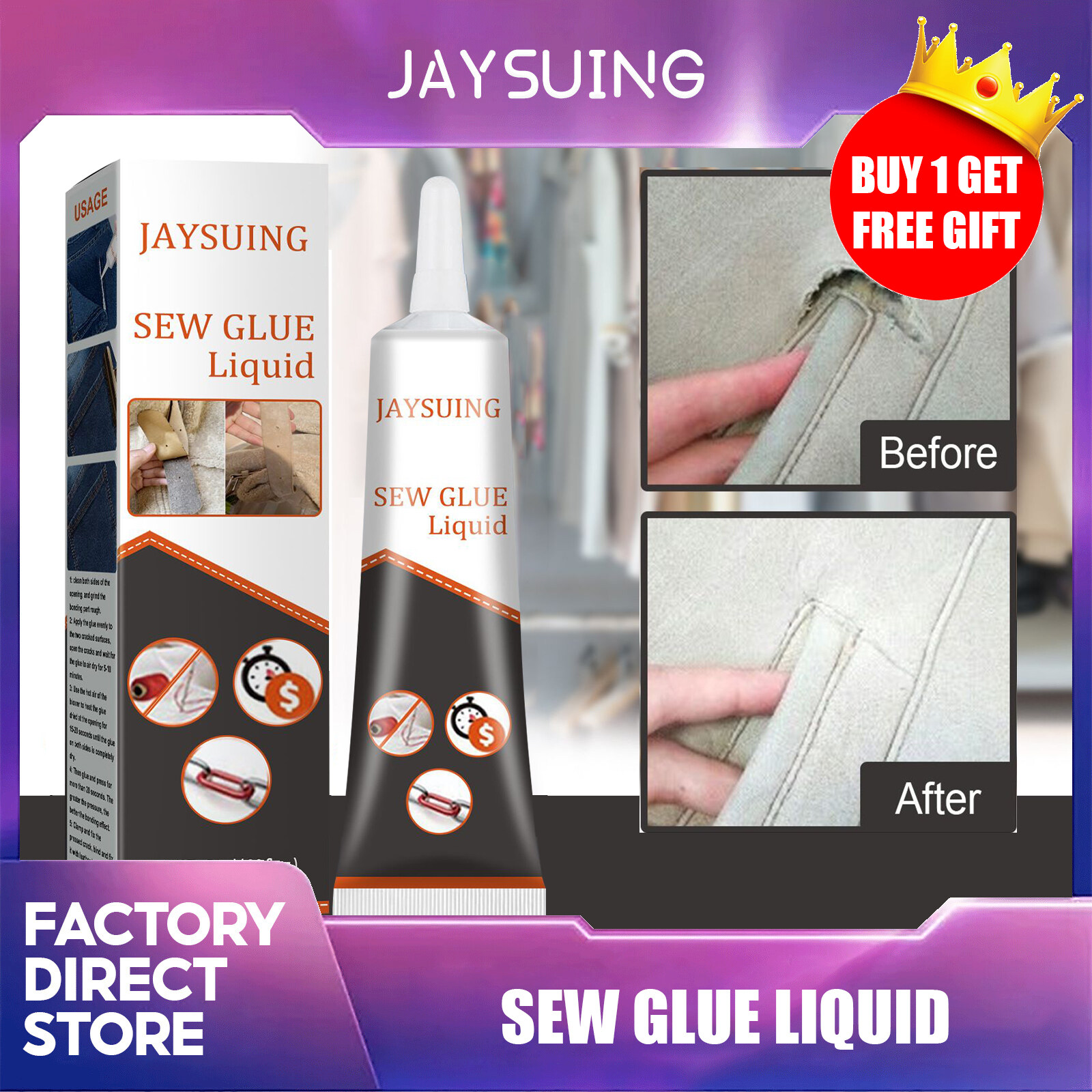 4.This quick-drying adhesive is suitable for any type of fabric including but not limited to cloth, linen, denim, felt, suede, leather, cotton, polyester, flannel, silk, synthetics and nylon.