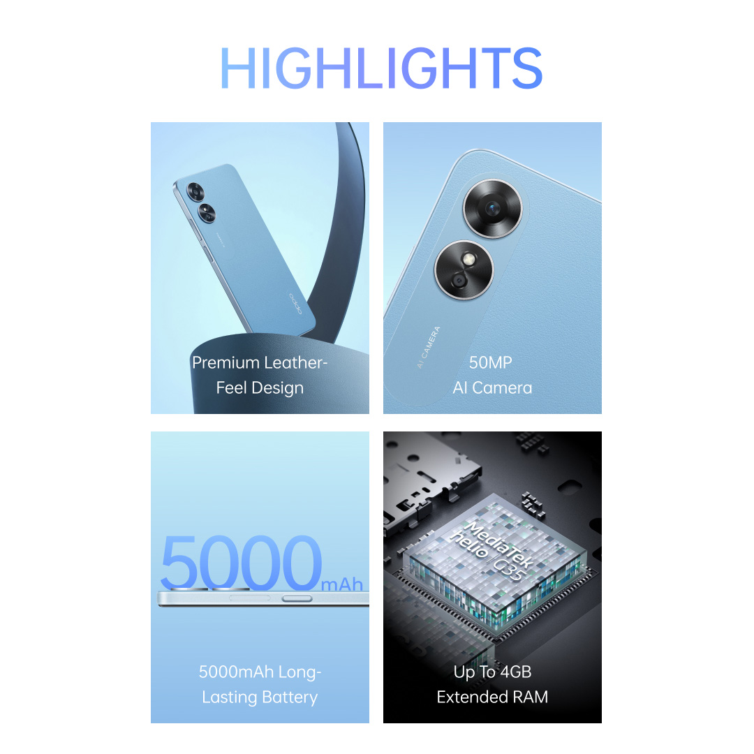 OPPO A17 / Premium-Leather Feel Design / 50MP AI Camera / 5000mAh Long-Lasting Battery