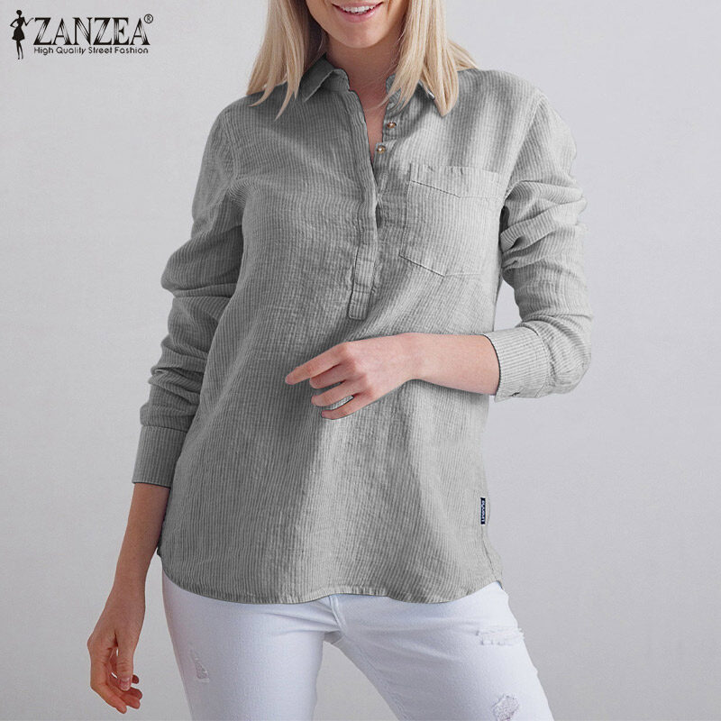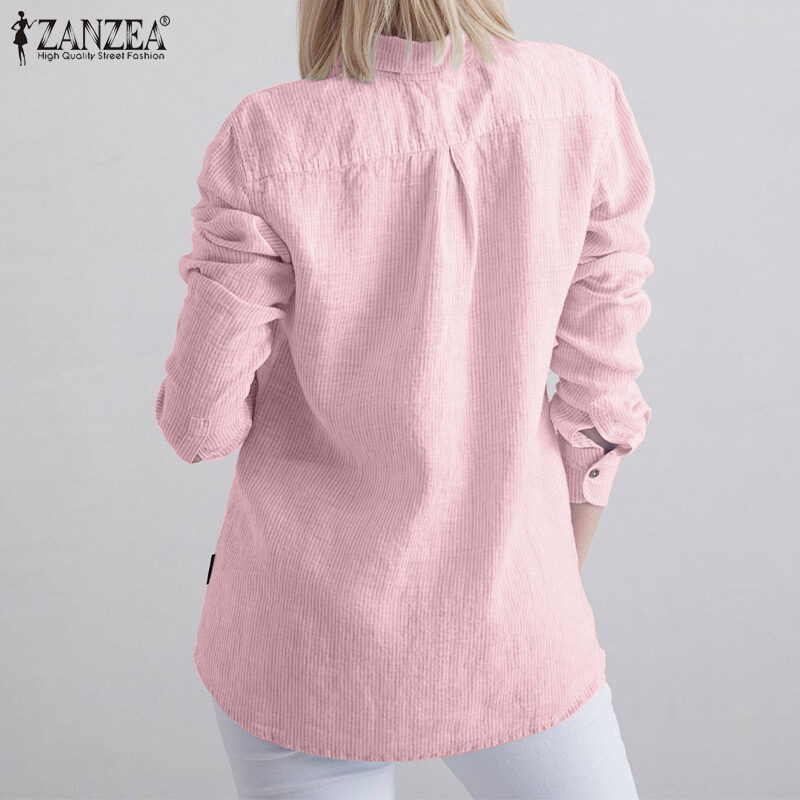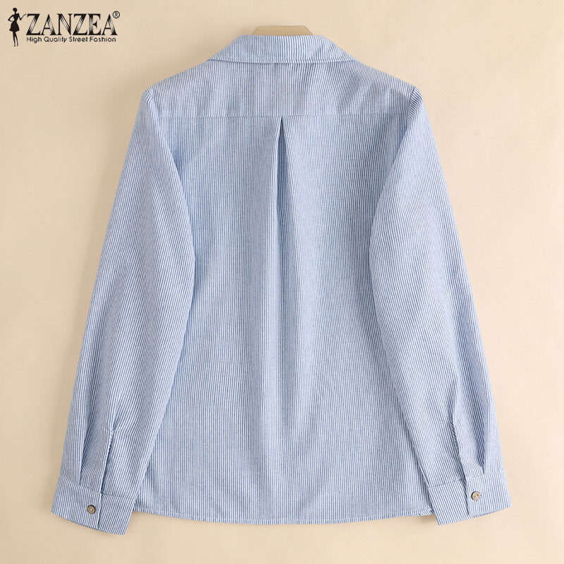 ZANZEA Women Striped Collared Long Sleeve T-Shirts Blouse Casual Work Shirt Loose Tops #15