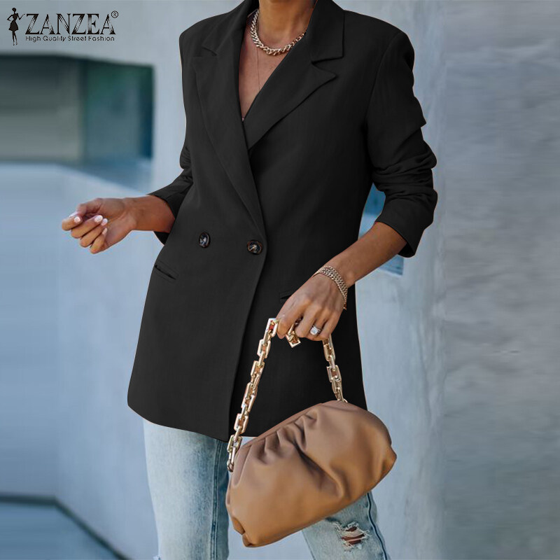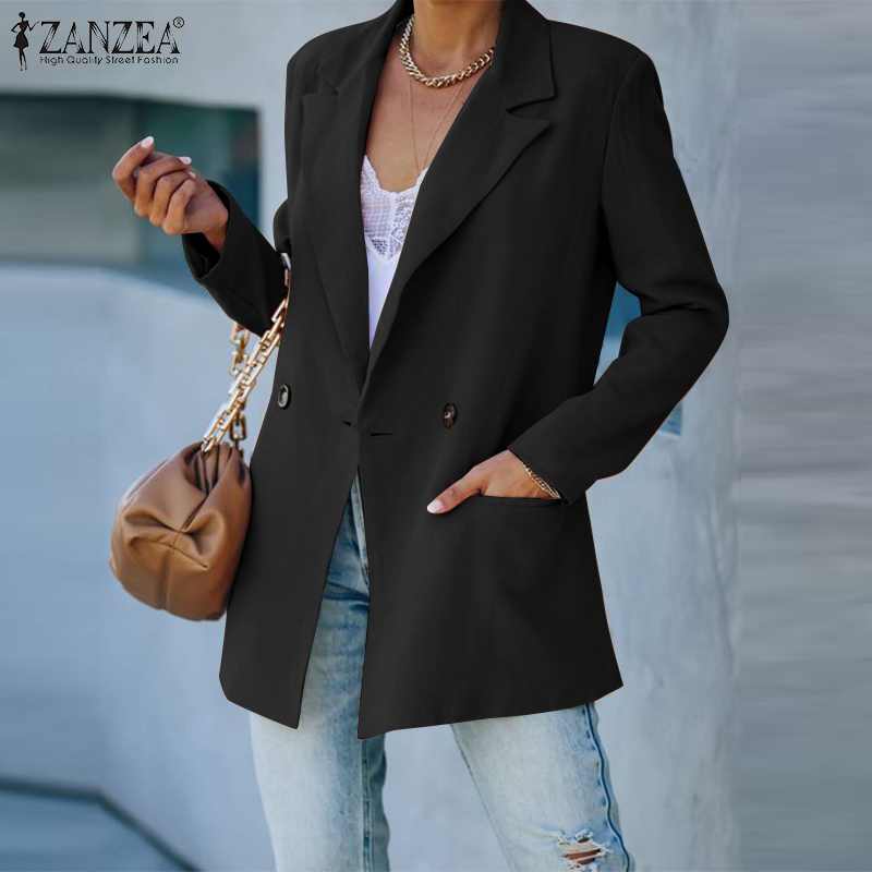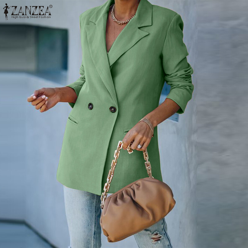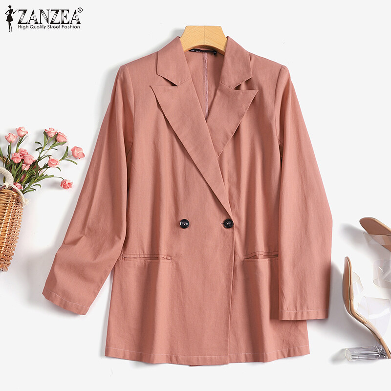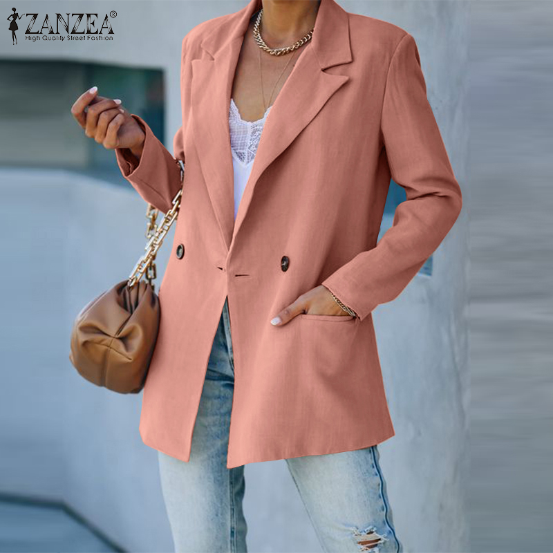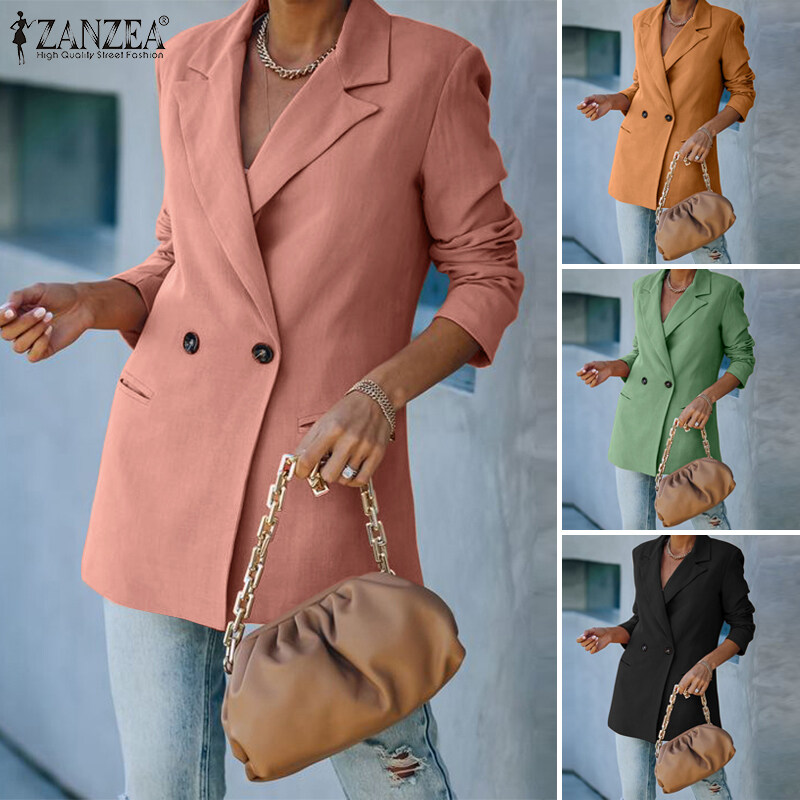 ZANZEA Women Formal Office Long Sleeve Blazer Commute Cotton Double Breasted Suit Coat #15