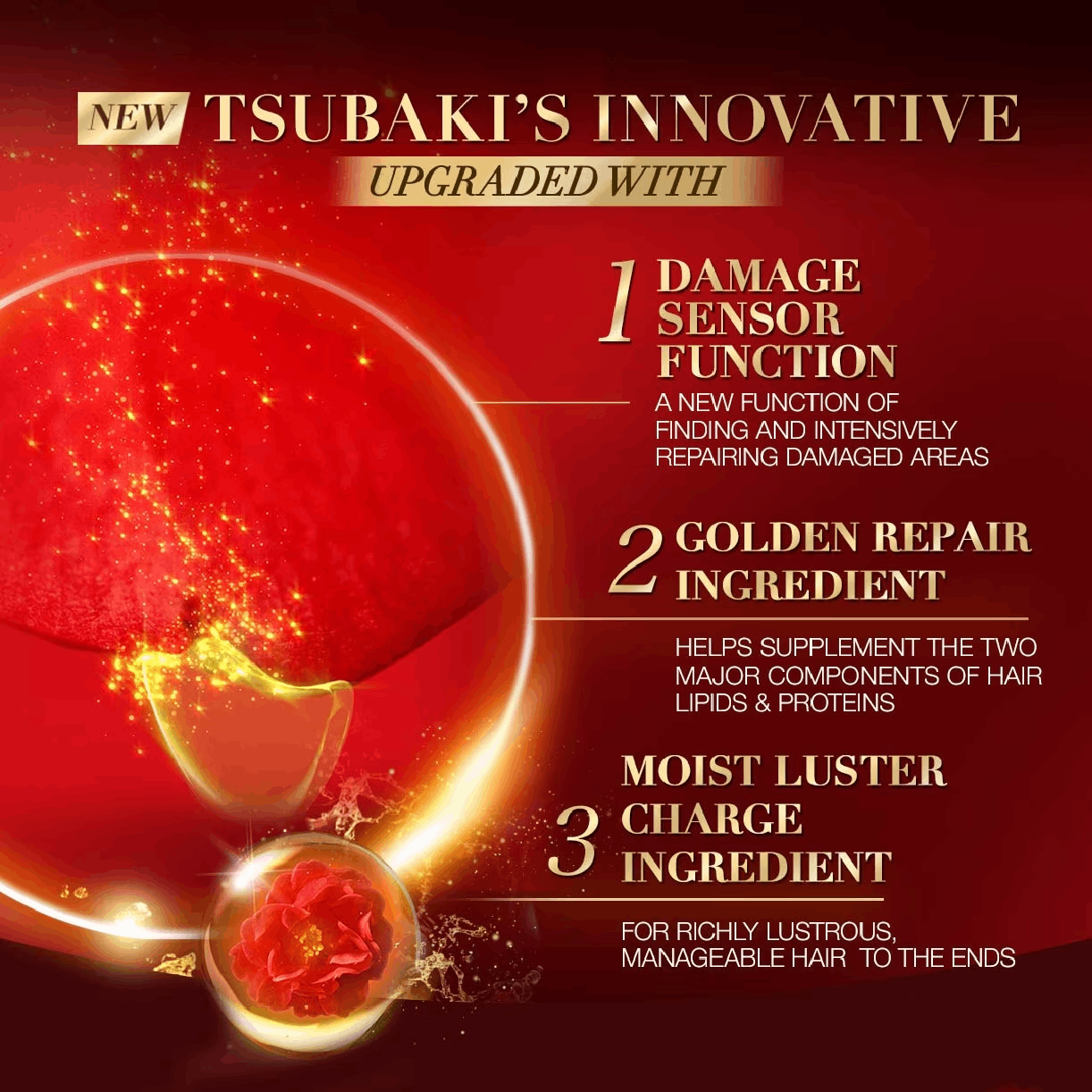 DIRECTIONS: • Dry gently after shampoo and conditioner. Apply adequate amount throughout the hair and rinse thoroughly. (Effective even when rinsed off immediately.) • Daily use recommended. •Combined use with TSUBAKI’s shampoo and conditioner recommended.
