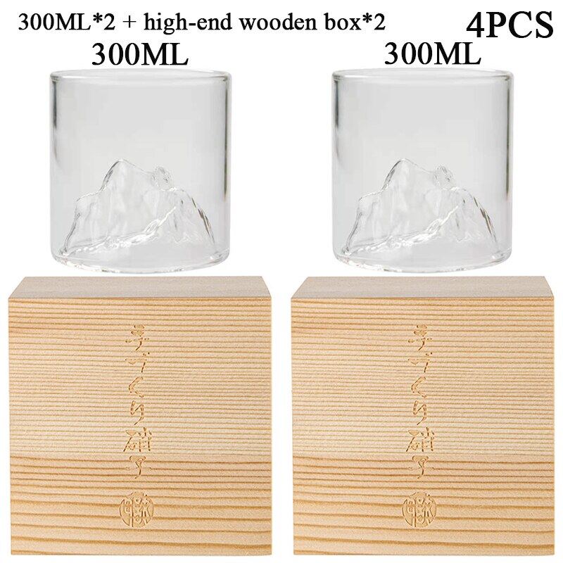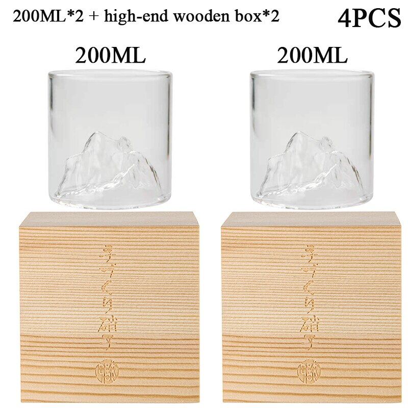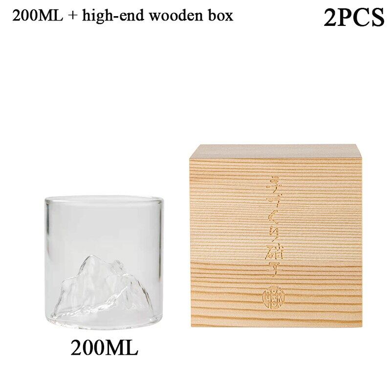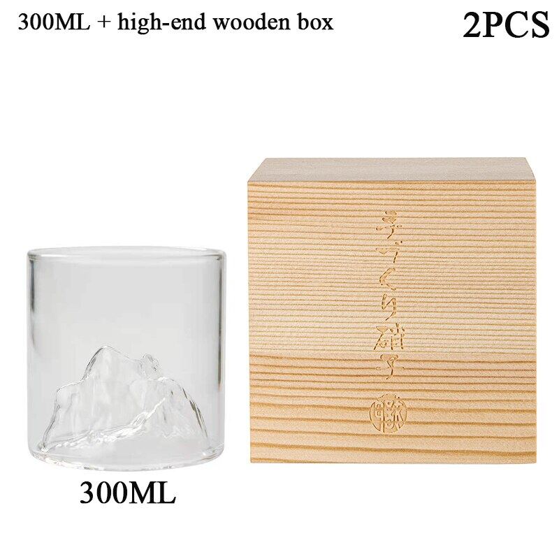 Japan 3D Mountain Whiskey Glass Glacier Old Fashioned Whisky Rock Glasses Whiskey-Glass Wooden Gift Box Vodka Cup Wine Tumbler