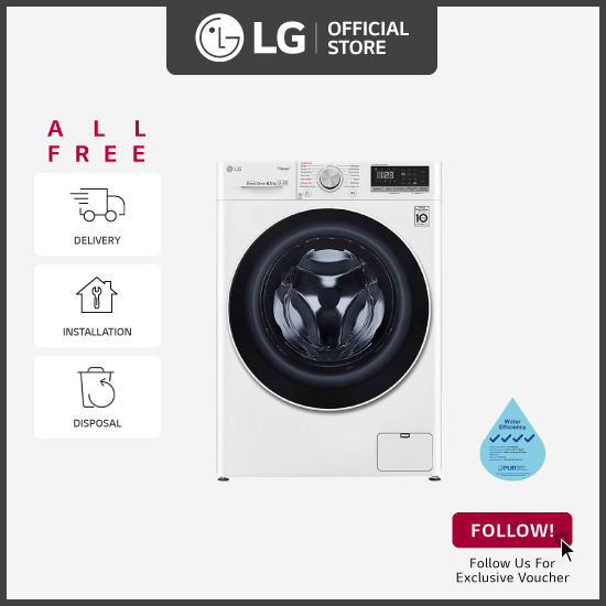 [Bulky] LG FV1285S4W LG 8.5KG Slim AI Direct Drive Front Load Washing Machine + Free Delivery + Free Installation + Free Disposal